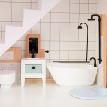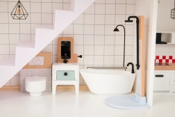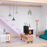 Chaque étage a une fonction clairement définie – de la cuisine et la salle de bain au salon et à la chambre avec balcon. Les enfants créent facilement leurs propres histoires.