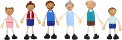 Le set comprend une famille de six personnages aux membres articulés, qui stimule les compétences sociales et le jeu créatif.