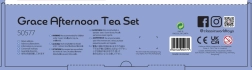 Le set comprend un grand plateau, des soucoupes pour les tasses, une théière, des tasses, des cuillères et des desserts.
