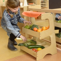 Grâce à sa structure en bois, ce stand de marché aide à réduire la production de déchets plastiques et encourage le jeu durable.