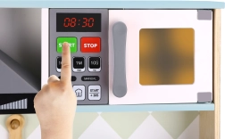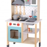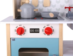 Cette belle cuisine en bois offre une large gamme de fonctionnalités telles que cuisinière, four, micro-ondes et tableau d'affichage, sur lequel les enfants peuvent dessiner. La cuisine est fabriquée à partir de matériaux de haute qualité et est destinée aux enfants à partir de 3 ans.