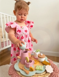 L'ensemble de thé est idéal pour les enfants qui aiment jouer aux goûters. Cet ensemble est fabriqué en bois de qualité et est composé de composants multicolores qui attirent le jeu.