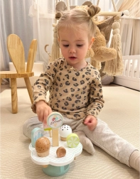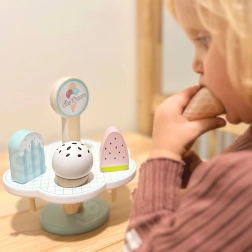 Ce superbe set de glaces en bois est idéal pour les enfants qui aiment le jeu créatif. Les couleurs pastel et la finition soignée garantissent des heures d’amusement en jouant au vendeur de glaces ou en équipant une cuisine pour enfants. Un choix sain pour développer la créativité et les compétences sociales. Les aimants assurent la stabilité, rendant le jeu encore plus agréable.