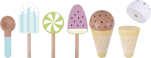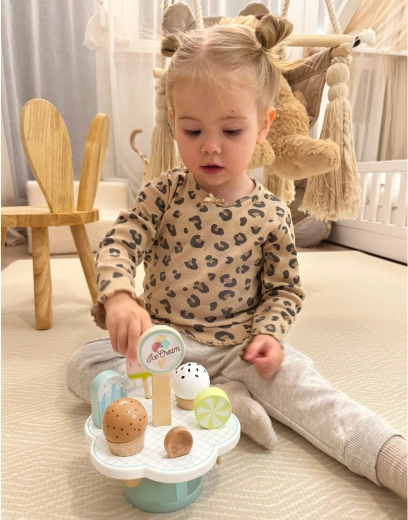 Set de glaces en bois de Tooky Toy offrant un divertissement créatif pour les enfants, avec de beaux tons pastel et des éléments magnétiques pour plus de stabilité.