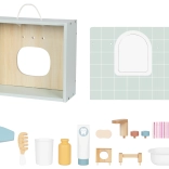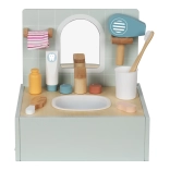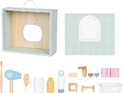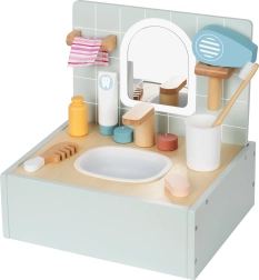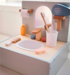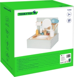 Transformez les rituels d’hygiène quotidiens en jeu créatif avec la salle de bain en bois de Tooky Toy. Ce mignon mini-ensemble comprend tout le nécessaire pour jouer des scènes de salle de bain, y compris un miroir, un faux lavabo avec robinet et des accessoires réalistes.