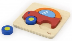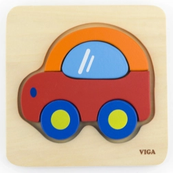 Puzzle bloc en bois en forme de voiture, marque VIGA, offrant durabilité et attrait coloré.