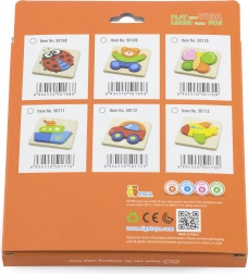 Chaque puzzle a une forme différente - avion, coccinelle, voiture et papillon - ce qui soutient la coordination et les capacités cognitives.