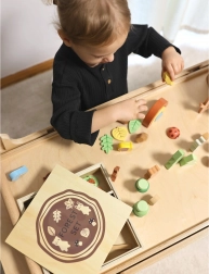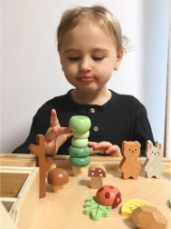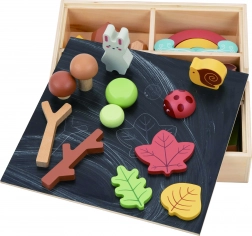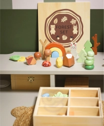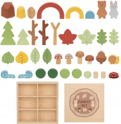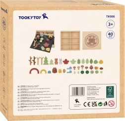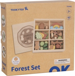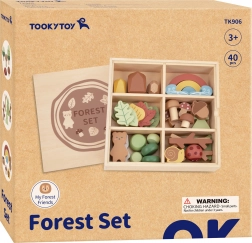 Set de la Forêt en bois de Tooky Toy conçu pour l'amusement créatif des enfants. Contient divers éléments forestiers permettant le tri, empilement et construction, favorisant la création d'un environnement forestier unique.