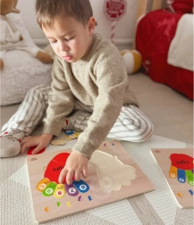 Ce puzzle aide les enfants à apprendre à compter et distinguer les couleurs grâce à un jeu interactif.