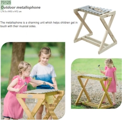 Découvrez la joie de la musique à ciel ouvert. Le cadre en bois robuste et les touches métalliques garantissent un son pur, résonant, ainsi qu’une longue durée de vie même en usage extérieur fréquent. Le métallophone est idéal pour les maternelles, les aires de jeux et les jardins privés – les enfants y exercent leur coordination, leur ouïe et leur sens du rythme, tout en renforçant leur confiance en soi et leur audace à créer leur propre mélodie.