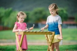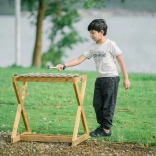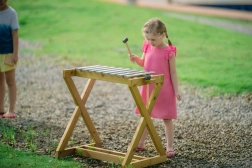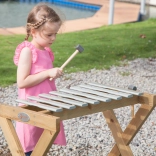 L’instrument est fabriqué en bois de sources responsables et conçu pour résister à la pluie comme au soleil. Grâce aux deux maillets, deux enfants peuvent jouer simultanément et découvrir ensemble la magie de la collaboration musicale.