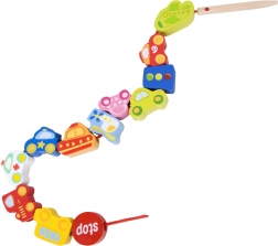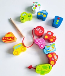 Découvrez un jouet malin qui associe apprentissage et plaisir. Les perles en bois en forme de voitures, d’autobus, d’avion ou de panneaux de signalisation s’enfilent facilement sur une cordelette avec embout en bois. En jouant, les enfants entraînent la motricité fine, la précision des mouvements ainsi que la reconnaissance des couleurs et des formes.