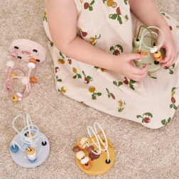 Les enfants déplacent les perles le long des boucles, ce qui entraîne naturellement la prise en main, la précision et la fluidité des mouvements dès 12 mois.