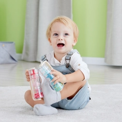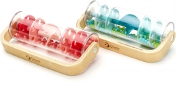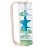 Les billes colorées s’écoulent en douceur et produisent un léger son de pluie qui fascine et calme les enfants.