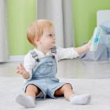 La poignée en bois arrondie tient parfaitement en main. Le jouet peut être secoué, incliné et tourné à 360° comme un hochet amusant.