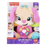 La sœur chiot FISHER-PRICE Laugh & Learn Smart Stages est à la fois un doudou tout doux et un jouet éducatif malin. Les enfants de 6 à 36 mois découvrent leurs premières compétences grâce aux chansons, aux lumières et aux zones tactiles. En appuyant sur les boutons du ventre, le petit cœur s’illumine et lance des chansons, des chiffres ou des couleurs – un apprentissage naturel et plein de joie.