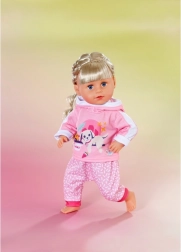 Ce survêtement rose est l’accessoire parfait pour la garde-robe des poupées BABY born 43 cm ainsi que pour les oursons BABY born Teddy. Le sweat avec un adorable motif de chien au repos et le pantalon agréable à motif délicat offrent du confort à chaque aventure. Grâce à sa coupe bien pensée, la tenue s’enfile et se retire facilement.