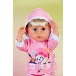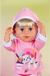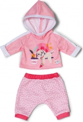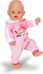 Adorable survêtement rose pour poupées BABY born de 43 cm, alliant confort et style. L’ensemble comprend un sweat à capuche tout doux avec motif chien et un pantalon coordonné à motifs. Grâce aux manchons élastiques et à l’enfilage facile, il est idéal pour le jeu quotidien et développe l’imagination ainsi que les compétences de soin.
