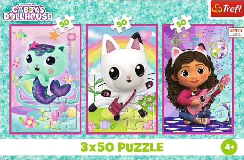 Puzzle 3x50 - Faites connaissance avec Gabby et ses chats est une collection amusante inspirée de l’émission Gabby’s Dollhouse. Assembler le puzzle n’est pas seulement amusant, c’est aussi un moyen de développer la motricité fine et l’imagination.