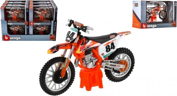 Le modèle représente fidèlement des détails réalistes de la véritable moto de motocross, y compris les éléments de design et les composants fonctionnels comme les pneus et les guidons.
