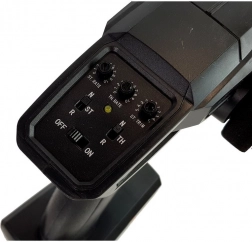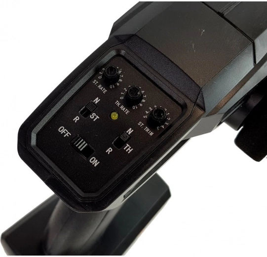 Radiocommande pistolet ergonomique avec direction et accélérateur sur fréquence 2,4 GHz pour une portée fiable et une conduite sans interférences mutuelles.