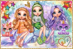 Ces puzzles stylés raviront tous les fans de la série RAINBOW HIGH. La boîte contient deux images distinctes de 200 pièces chacune, pour des soirées d’amusement garanties. Grâce à une découpe précise et à des couleurs intenses, les pièces s’emboîtent parfaitement et les images finales sont splendides.