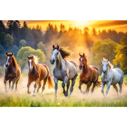 Le motif de chevaux galopant dans une prairie verte ravira les amoureux de la nature et des animaux et deviendra une belle pièce maîtresse de votre intérieur.