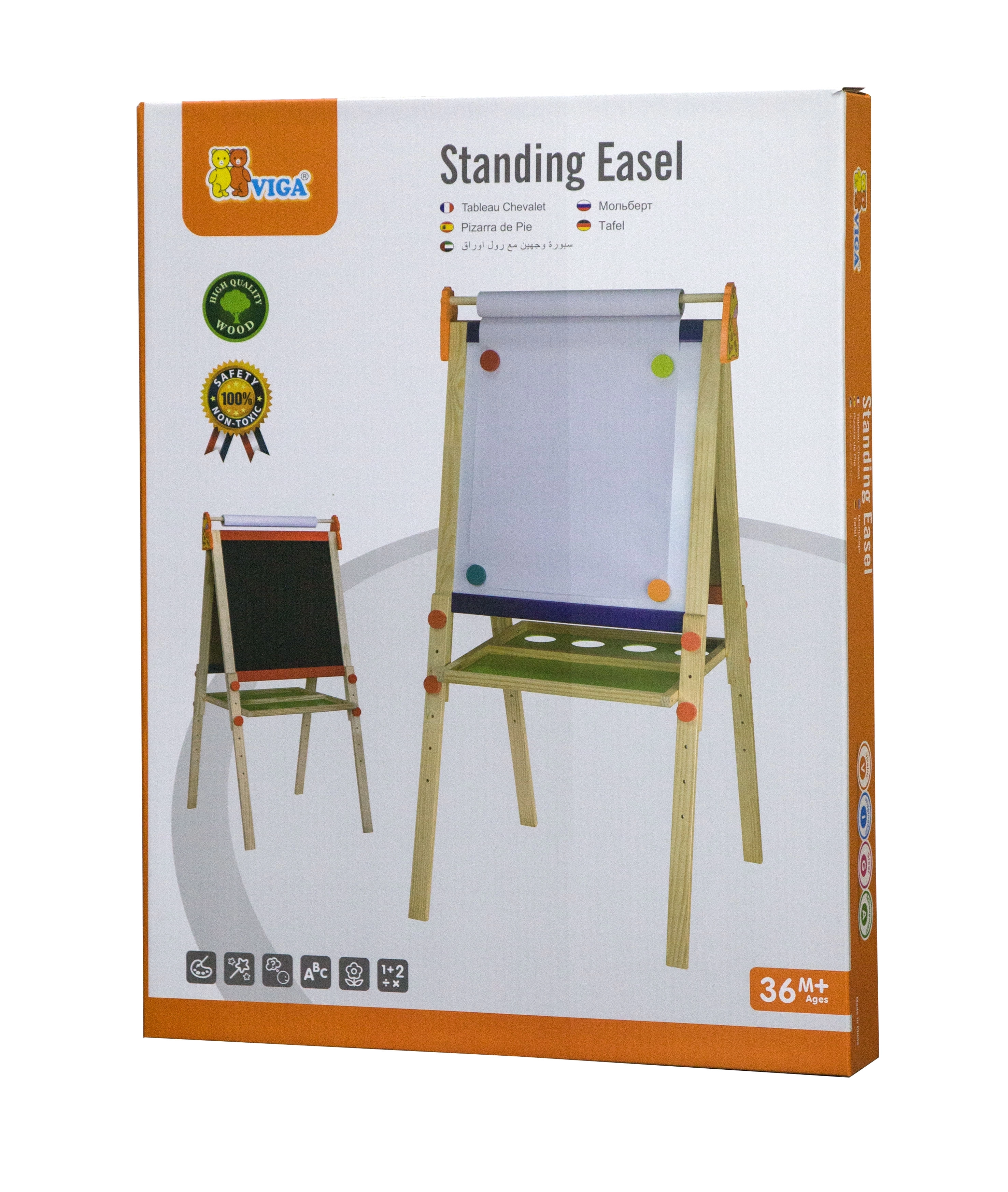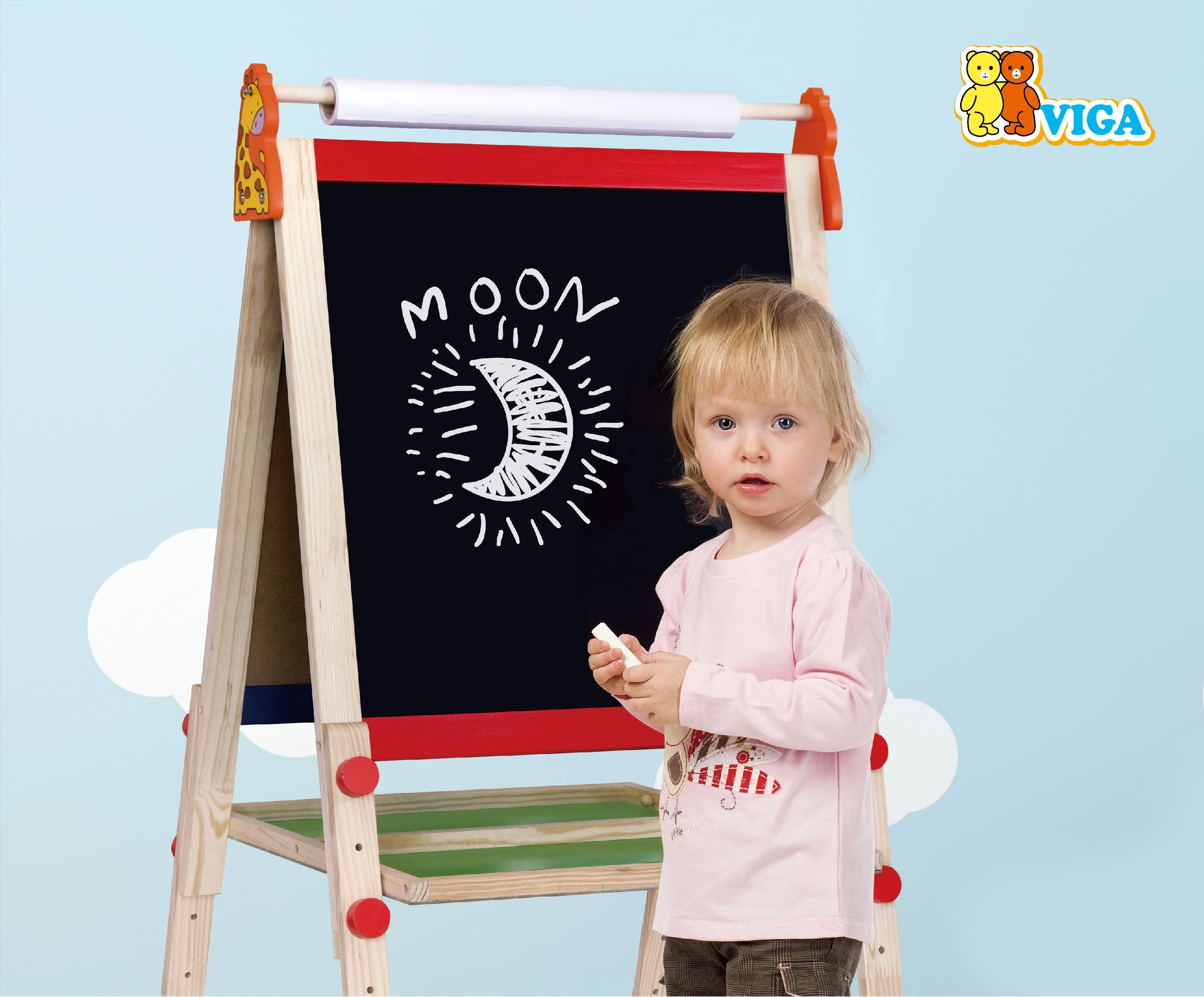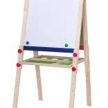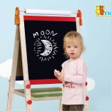 Ce tableau de dessin en bois Viga de haute qualité offre deux grandes surfaces pour un amusement et un apprentissage sans fin – un tableau noir pour dessiner à la craie et un tableau blanc magnétique pour un feutre effaçable. Sa structure stable garantit une utilisation sûre à la maison comme dans la chambre d’enfant.