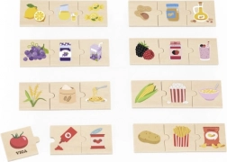 Chaque paire de pièces relie une culture au produit final (p. ex. citron → limonade, maïs → pop-corn). Les enfants intègrent naturellement les relations et développent leur logique.