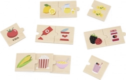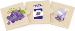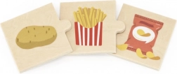 Ce set en bois de qualité propose de simples puzzles qui relient l’ingrédient à son produit transformé. Les enfants apprennent de façon ludique d’où viennent leurs friandises préférées – par exemple pomme de terre et frites, citron et limonade, maïs et pop-corn ou raisins et confiture/jus de raisin.