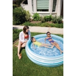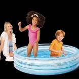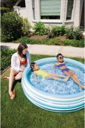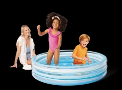 La piscine gonflable bleue pour enfants apporte une agréable fraîcheur pendant les journées chaudes. Sa structure stable composée de trois anneaux gonflables assure solidité et bords moelleux, tandis que le fond en PVC assoupli est agréable au toucher et limite les glissades.