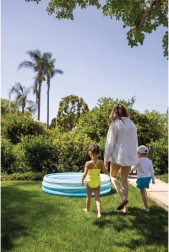 Il suffit de la gonfler, de la remplir d’eau et le plaisir peut commencer. Grâce à ses dimensions compactes, la piscine convient aux petits jardins et se range et se transporte facilement.