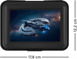 La boîte à déjeuner avec motif de vaisseau spatial est faite pour tous les passionnés de cosmos. Cette boîte noire est non seulement stylée, mais aussi pratique: