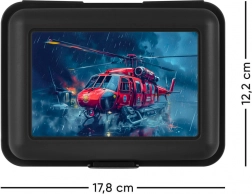 Le couvercle avec une illustration d’un hélicoptère rouge apporte un look attrayant à la boîte à goûter, idéal pour les enfants.
