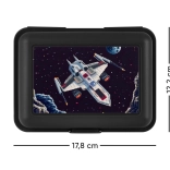 Boîte à déjeuner Espace est le choix idéal pour transporter votre repas quotidiennement. Cet emballage en plastique noir vous séduira par son design spatial et sa praticité résistante.