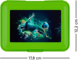 Profitez du confort et du style avec cette boîte à déjeuner en plastique ornée d'un motif de football dynamique. Elle est conçue pour une fonctionnalité et une esthétisme optimales: