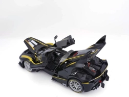 Grâce à sa construction métallique, ce modèle de voiture est robuste et durable, parfait pour une exposition prolongée sur vos étagères ou comme cadeau exceptionnel pour les passionnés d’automobile. Attendez-vous à ce que ce modèle attire l’attention avec sa peinture noire et ses éléments jaunes caractéristiques, reproduisant à la perfection la véritable voiture de course.