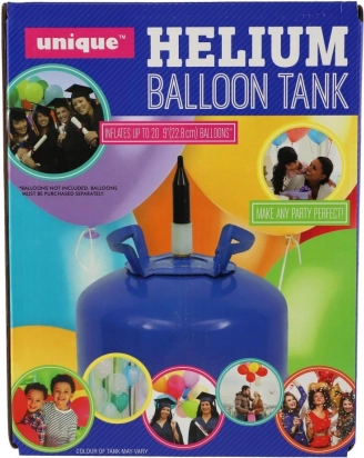 Bouteille jetable pratique avec hélium pour gonfler jusqu’à 20 ballons en latex d’un diamètre de 9" (22,9 cm). Convient également aux ballons en aluminium de 18" (env. 16 pièces). Utilisation facile, aucun outil requis, idéal pour les fêtes, mariages et anniversaires. Volume d’hélium 0,14 m³. Les ballons ne sont pas inclus dans l’emballage.