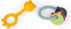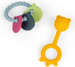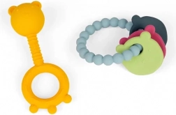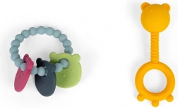 Ce set est fabriqué en silicone alimentaire sans danger, à la fois durable et léger, idéal pour les petites mains des enfants. Les jouets disposent de surfaces texturées qui offrent des stimulations sensorielles et aident à développer la préhension et la motricité fine. De plus, le doux son du hochet renforce ces stimulations.