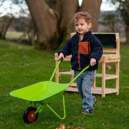 Grâce à son design ergonomique avec deux poignées et une roue en caoutchouc solide, la brouette est facilement maniable même pour les jeunes enfants.