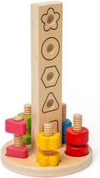 Visser et enfiler les formes sur le pic renforce les doigts, les poignets et la coordination œil-main. Idéal pour les premières compétences motrices.