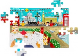 Puzzle avec des illustrations des monuments emblématiques de Londres, tels que Big Ben et le London Eye.