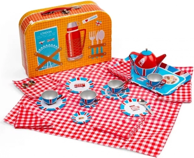Ce service à thé aux motifs londoniens permettra à vos enfants de créer le parfait thé de cinq heures. La valisette contient tout le nécessaire pour un petit pique-nique autour du thé :