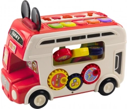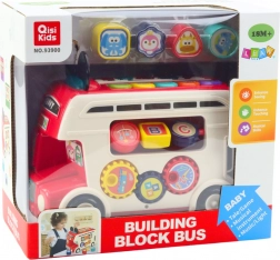 L'autobus est équipé d'ouvertures pour les blocs avec des lettres, que l'enfant peut assortir aux emplacements correspondants, développant ainsi ses compétences d'observation et la précision de ses mouvements. Sur les parois latérales, il y a des mécanismes rotatifs et des éléments interactifs qui offrent des stimuli sensoriels supplémentaires et encouragent l'exploration active.