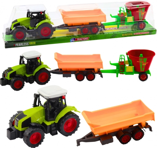 Découvrez un ensemble agricole complet qui permet aux enfants d’imiter les vrais travaux de la ferme. Le tracteur reproduit fidèlement l’apparence d’une machine agricole, la remorque basculante assure un transport facile de la « récolte » et la mélangeuse d’alimentation sert à mélanger et distribuer la nourriture aux animaux. L’ensemble est idéal pour jouer dans la chambre comme au jardin.