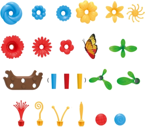 - Pièces pour construire les fleurs et le jardin : pistils, feuilles, calices, fleurs et tiges