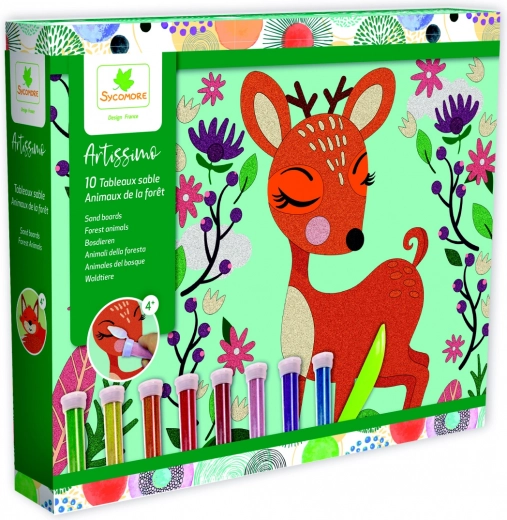 Pour chaque image, il suffit d’utiliser la spatule fournie pour décoller une partie du papier adhésif, puis de verser le sable dessus. Retirez ensuite l’excédent de sable et continuez avec la section suivante jusqu’à ce que l’image soit terminée. La boîte qui contient le kit est dotée d’une fermeture magnétique pratique et peut servir de boîte de rangement.