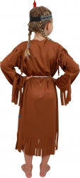 Ce déguisement pour fille est conçu pour allier confort et effet : une robe marron soulignée de liserés contrastés et de riches franges qui ondulent à chaque pas. Un matériau textile agréable et une coupe plus ample favorisent la liberté de mouvement, afin que votre enfant profite de la fête sans contrainte. Le bandeau à plumes assorti complète l'ensemble et la cordelette sert de ceinture simple.