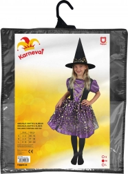 Des pois dorés scintillants sur l'association violet-noir créent un look ensorcelant qui se fera remarquer à chaque carnaval comme à Halloween.