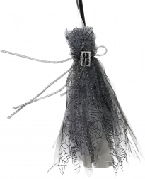 Apportez la touche finale parfaite à votre costume de sorcière. Ce balai de sorcière au design élégant noir‑gris, orné d’une boucle argentée et d’une délicate « jupe » en tulle, crée un effet spectaculaire à chaque pas. Léger en main, il est idéal pour poser et danser sur la piste.